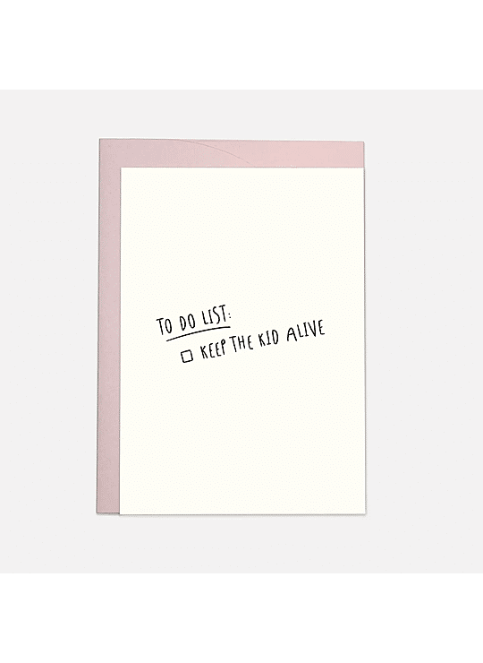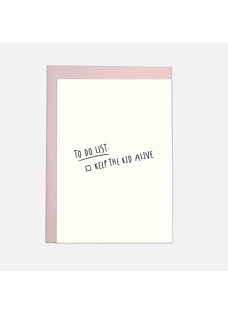 Send your friends or family who just had a baby an original greeting card and surprise someone with this ‘To do list: keep the kid alive‘ card.