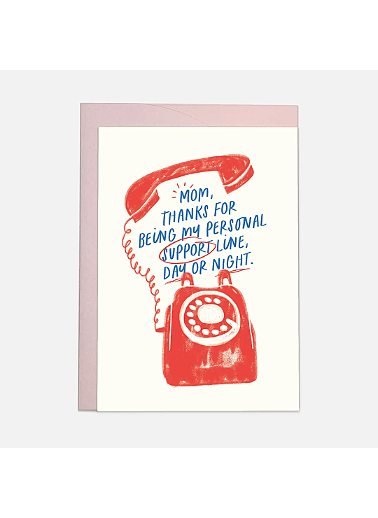Stuur je liefde, vrienden, familie of hond een originele wenskaart en verras iemand met deze 'Mam, bedankt dat je mijn persoonlijke hulplijn bent, dag en nacht' kaart.